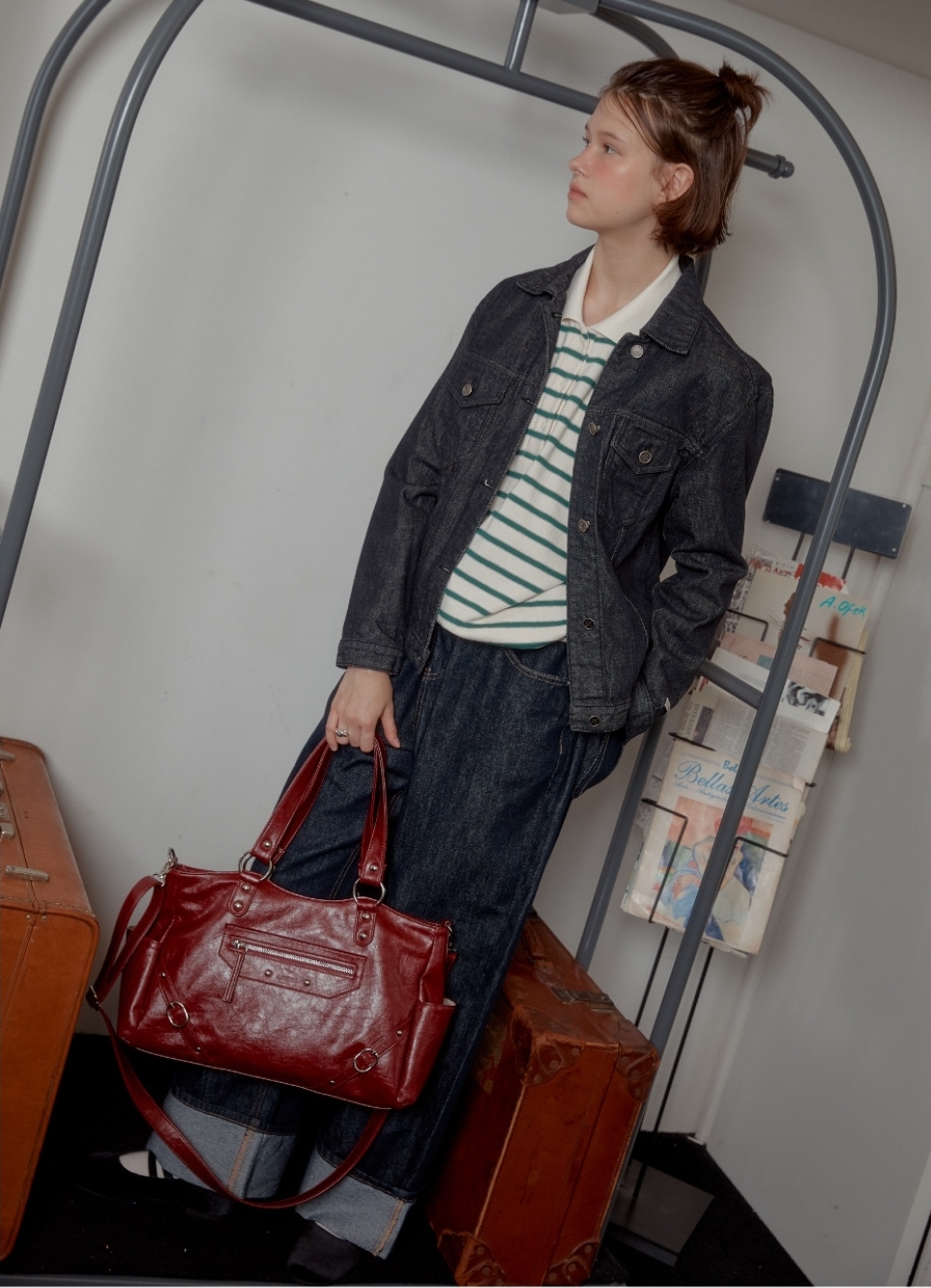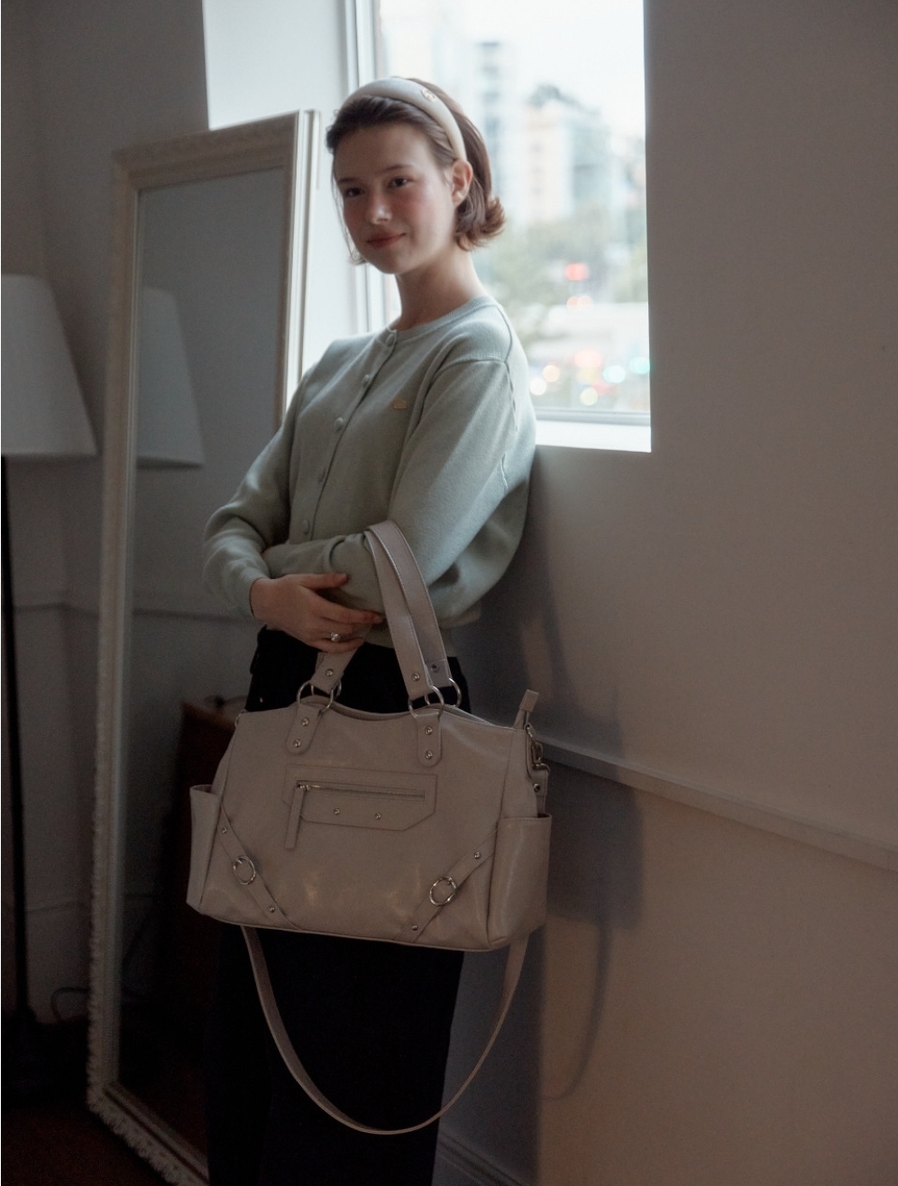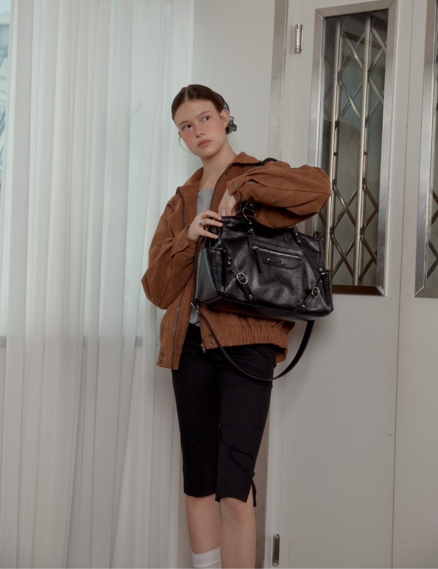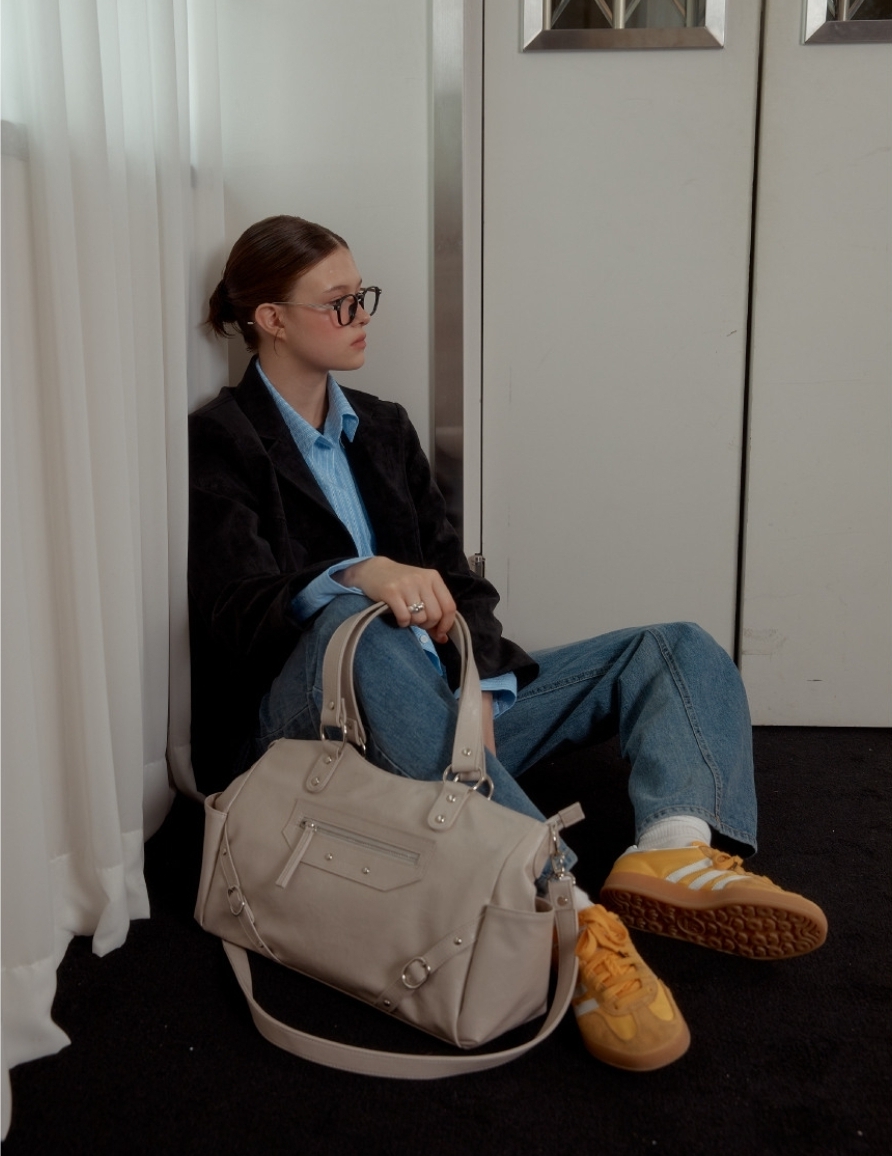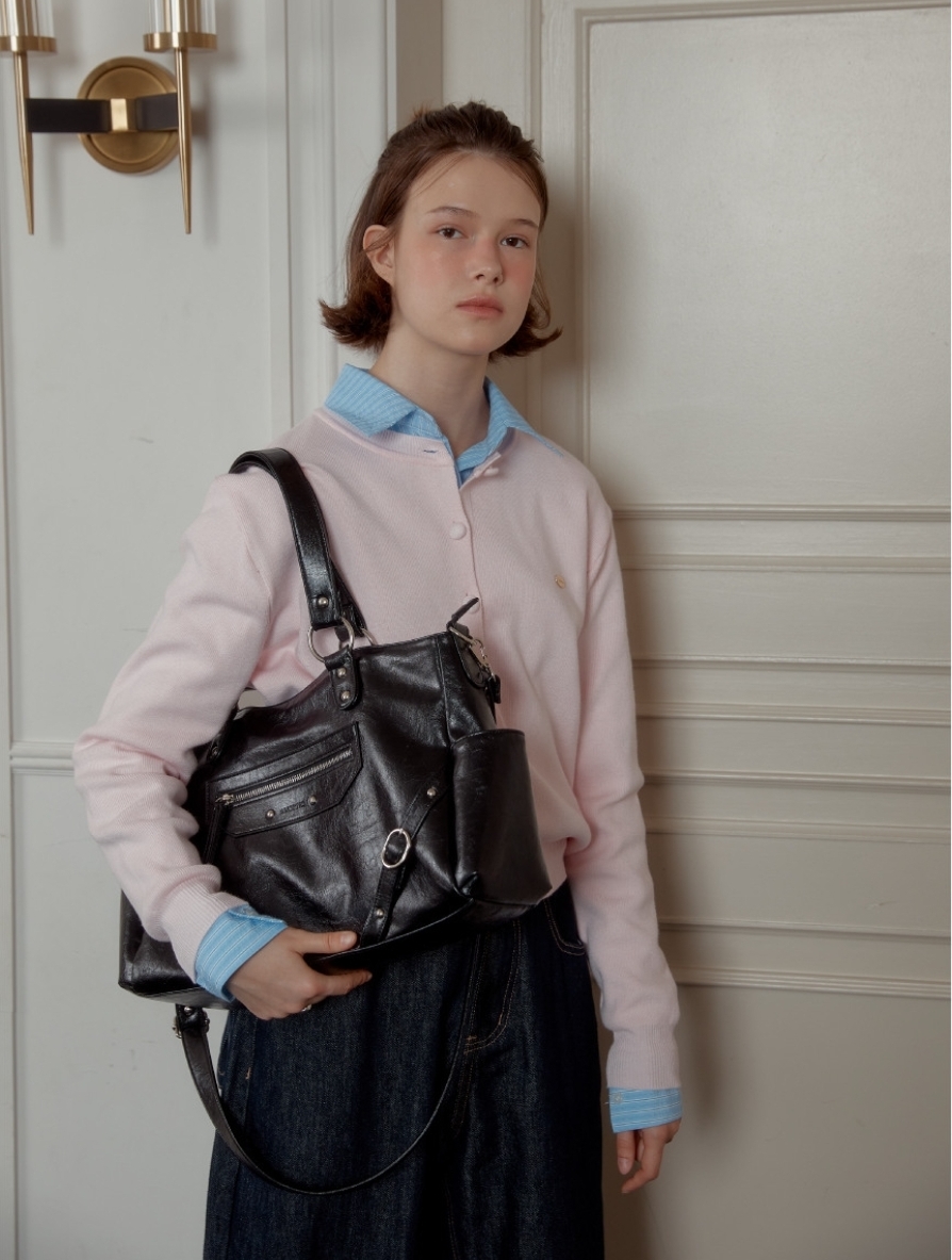 融合銀色鉚釘+大Ring設計 黑/紅/象牙白3️⃣色 光澤感皮革包~型格十足! 大容量設計 + 兩用揹法,實用與型格並重💯 Size:37.2×16.5×9.5cm 帶長:64-110cm